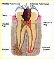 Endodontic treatment is necessary when the pulp becomes inflamed or infected. The most common reasons for inflammation or infection are deep cavities (caries), repeated dental procedures, cracks or chips. Trauma can also cause inflammation and often shows up as discoloration of the tooth. If pulp inflammation or infection is left untreated, it can cause painor lead to an abscess.